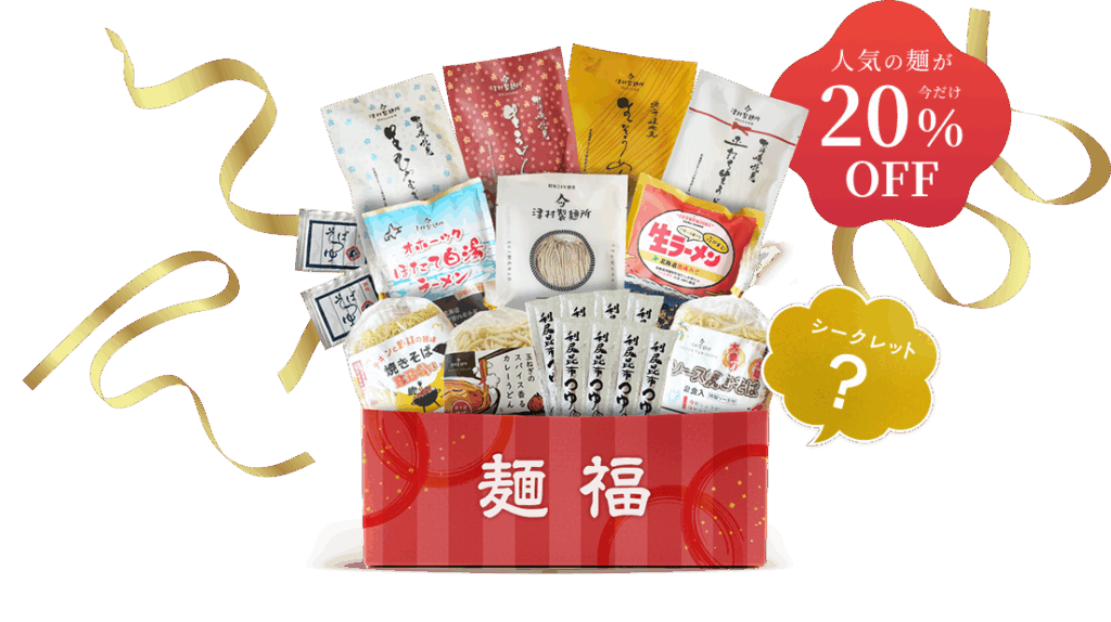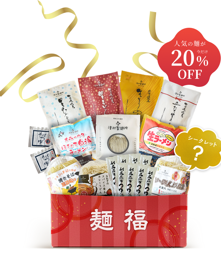 感謝の麺福セットは、公式オンラインショップ限定販売。期間限定の特別企画だからこそ、プレゼントにも安心してご利用いただけます。津村製麺所からの感謝を込めて。食べたら福が来る、特別なひと箱をぜひ、お早めにお求めください。