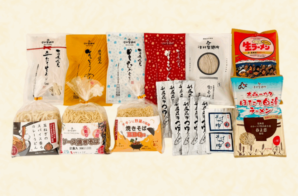 津村製麺所の人気麺と、北見の“おいしいもの”を詰め込んだ麺福セット。自家用にも、贈答用にも最適です。