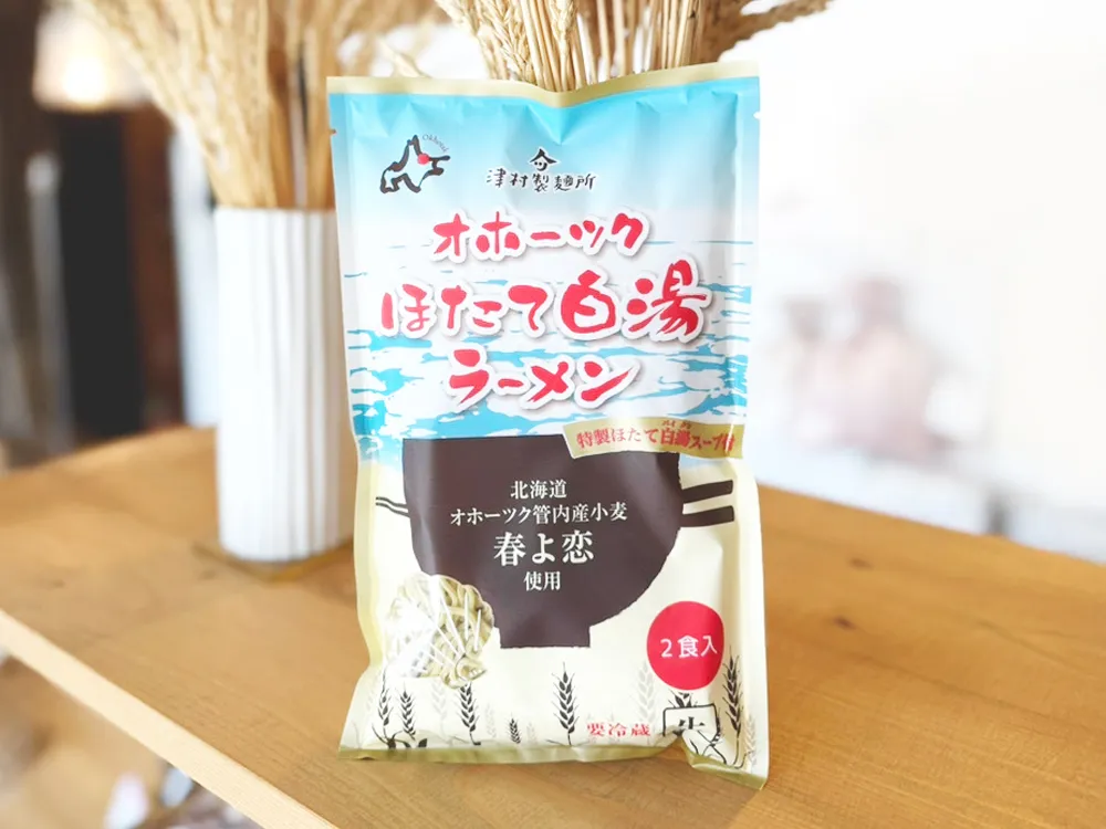 「つるきち生ラーメン 北海道熟成みそ味」の詳細はこちら「オホーツクほたて白湯ラーメン」はオホーツク産小麦「春よ恋」を100%使用し、小麦の豊かな香りが、スープと絶妙に絡み合います。