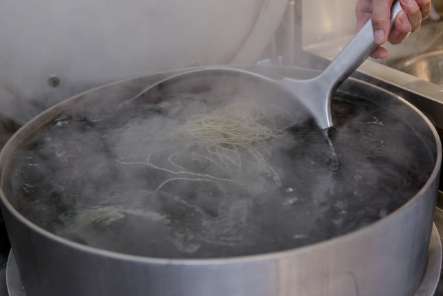 鍋底に麺がくっつかないように、時々優しく箸を入れることがポイントです。