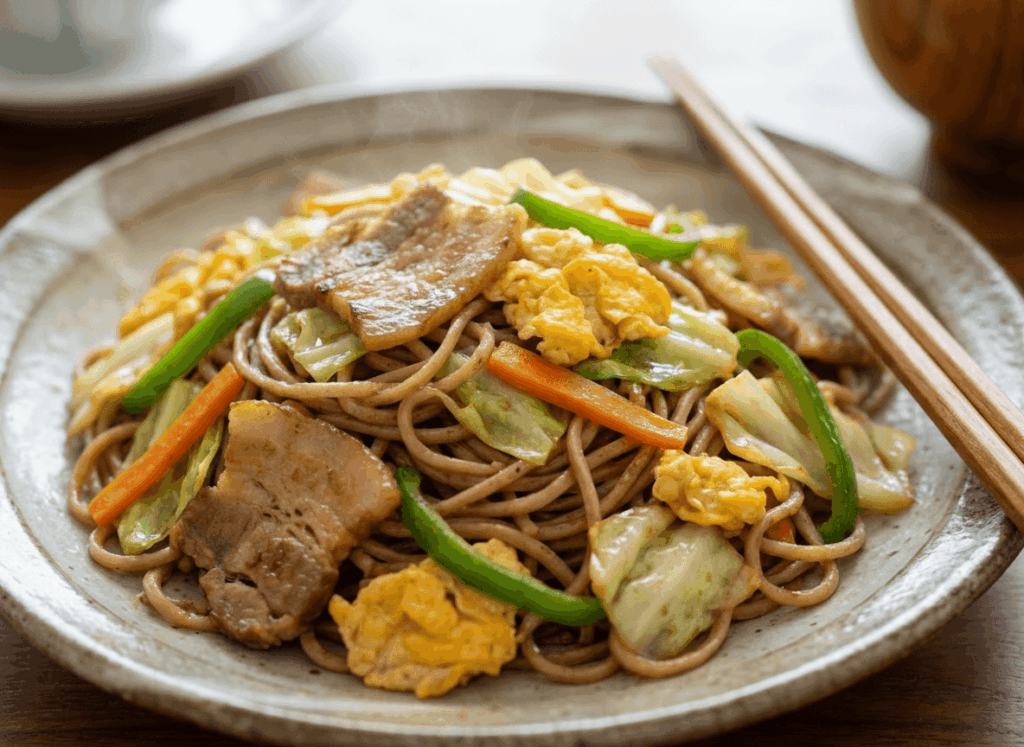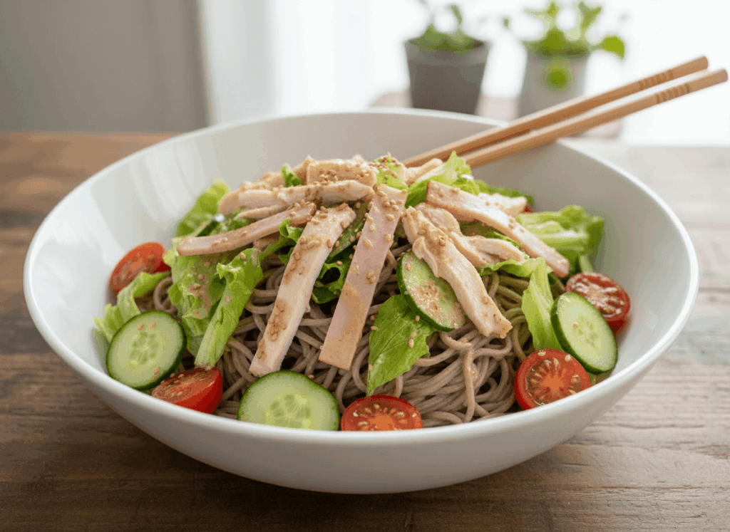 そばの風味と野菜の食感が楽しめるヘルシーレシピです。ダイエット中の方でも満足感があり、栄養バランスも整えやすいでしょう。