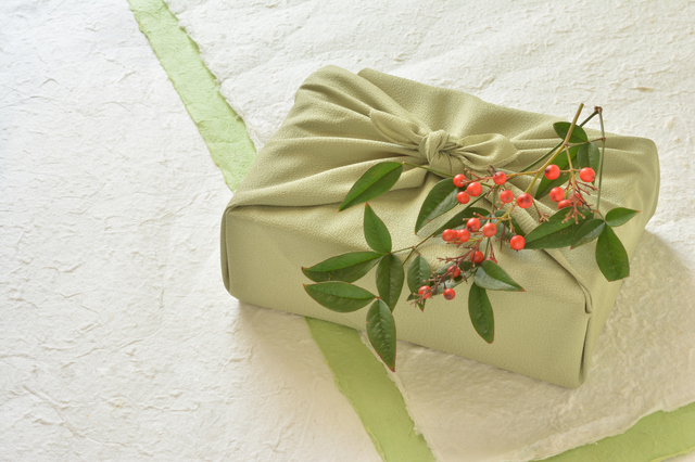 贈り物を布で丁寧にくるむ行為そのものが「礼儀」であり、包装紙には出せない格調と温かみが生まれます。